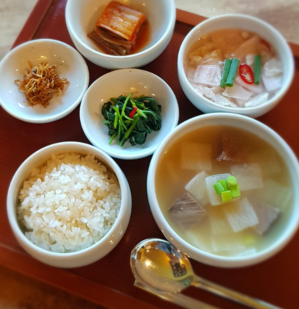 골동반수라 또는 전복죽 또는 배동치미메밀면